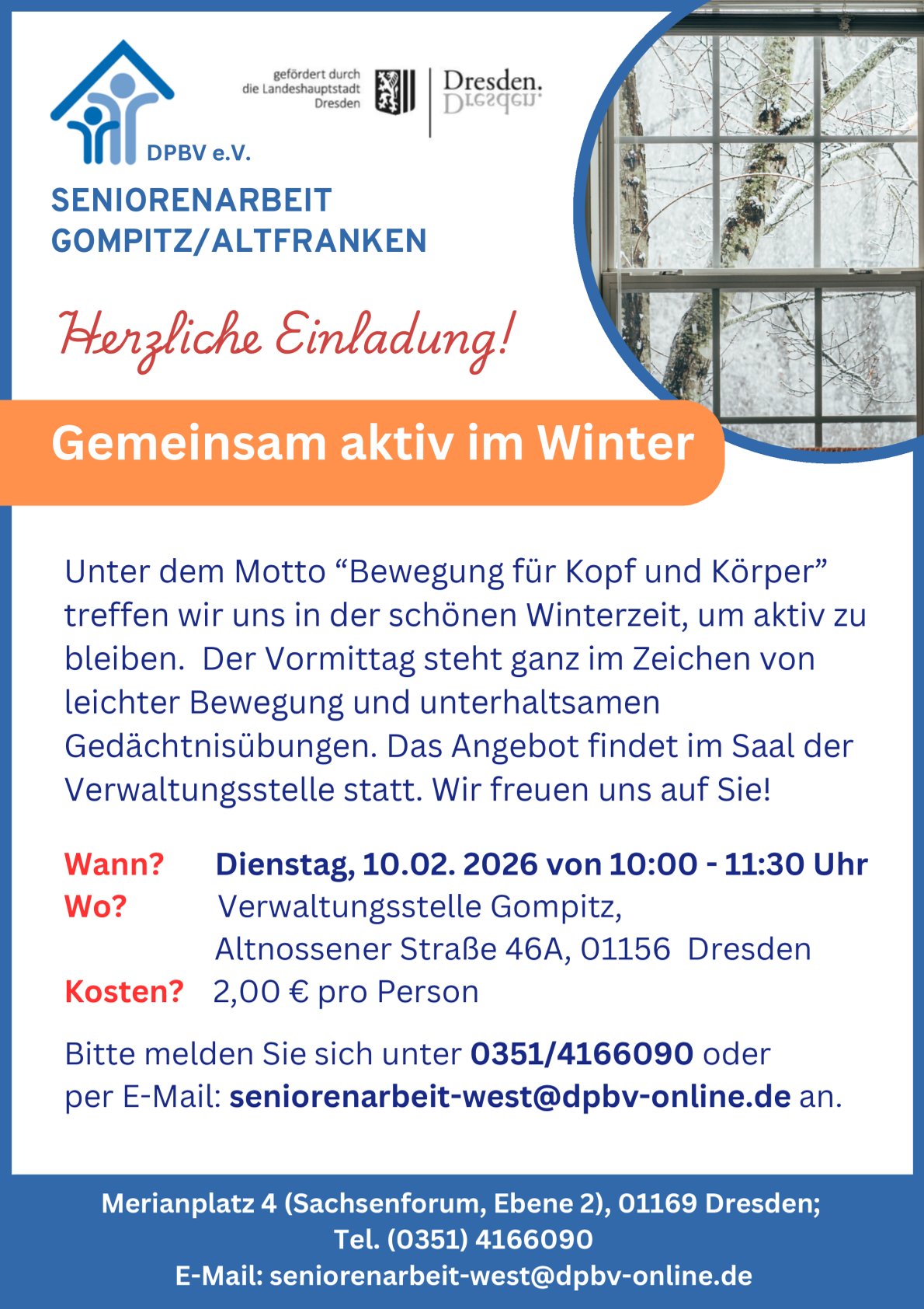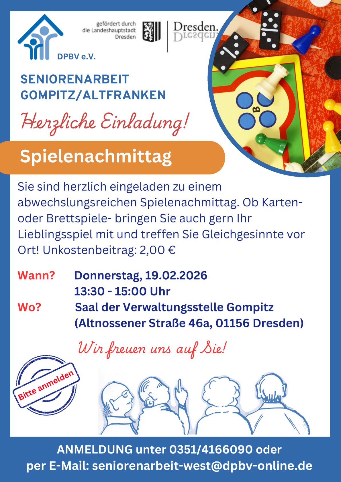 Unsere Angebote richten sich speziell an Menschen ab 60 Jahren, die in den Ortschaften Gompitz und Altfranken leben. Auch Angehörige, Freunde, Nachbarn und Interessierte sind herzlich willkommen!